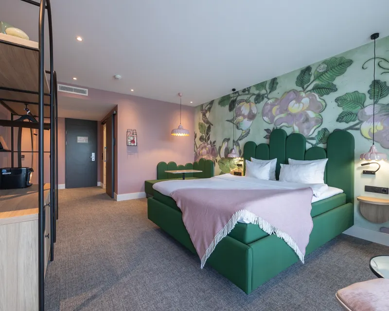 Tapijt, Kingsizebed (180cm x 210cm), kledingkast, kluis, flatscreen-tv met Duitse, Nederlandse en internationale programma's, minikoelkast met gratis mineraalwater per verblijf, airconditioning, tablet op de kamer, terras.